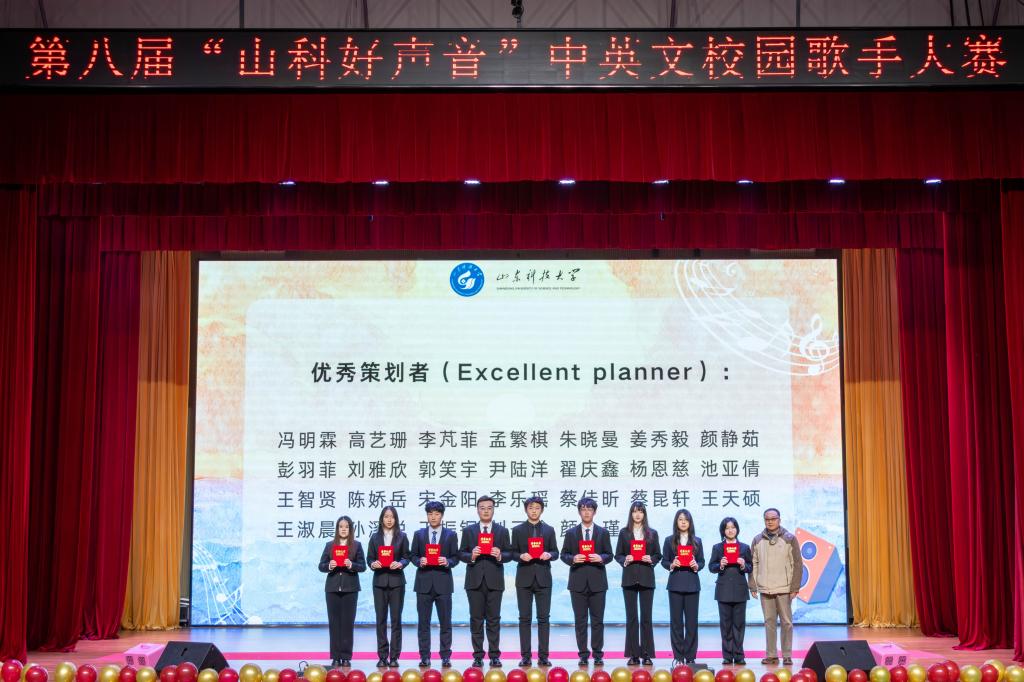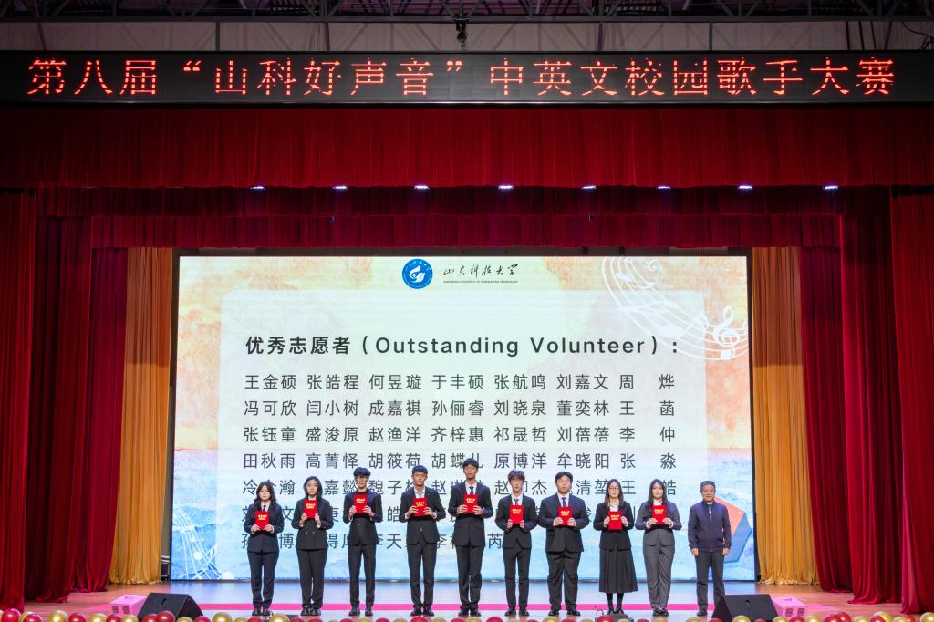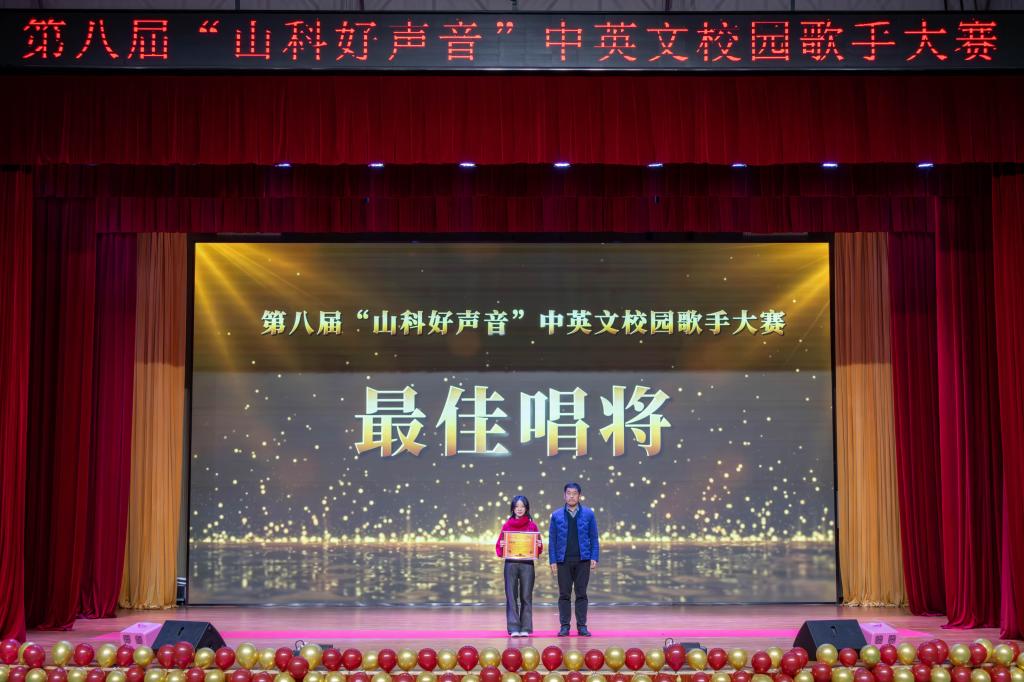 為提升大學生藝術修養(yǎng),激發(fā)英語學習熱情,豐富校園文化生活,推進國際化校園建設,12月14日,由學團工作部主辦、校區(qū)學生會承辦的第八屆“山科好聲音”中英文校園歌手大賽決賽在藝體樓隆重舉行。濟南校區(qū)主任郭加書,校區(qū)黨委委員毛慶東、劉西奎,相關部門負責人、學團工作干部、部分外籍教師和學生共同觀看比賽?;顒舆€特邀山東第一醫(yī)科大學、齊魯工業(yè)大學、山東中醫(yī)藥大學、山東財經大學、濟南大學等駐濟兄弟高校學生會主席團成員參加。