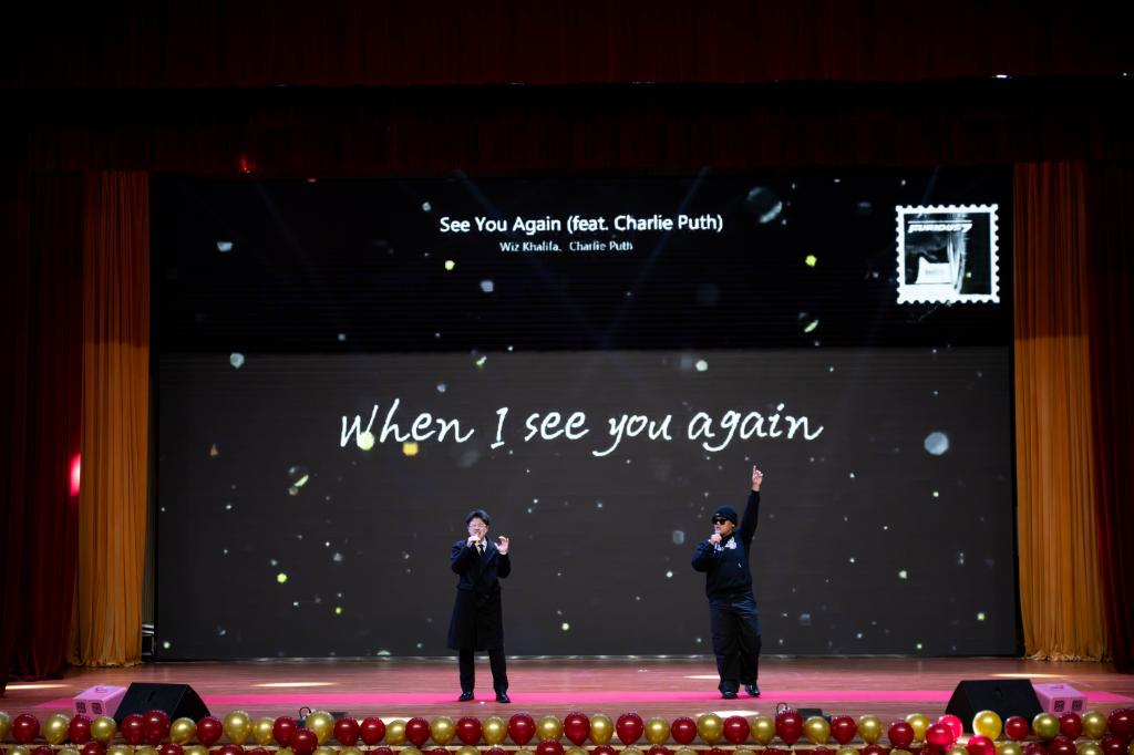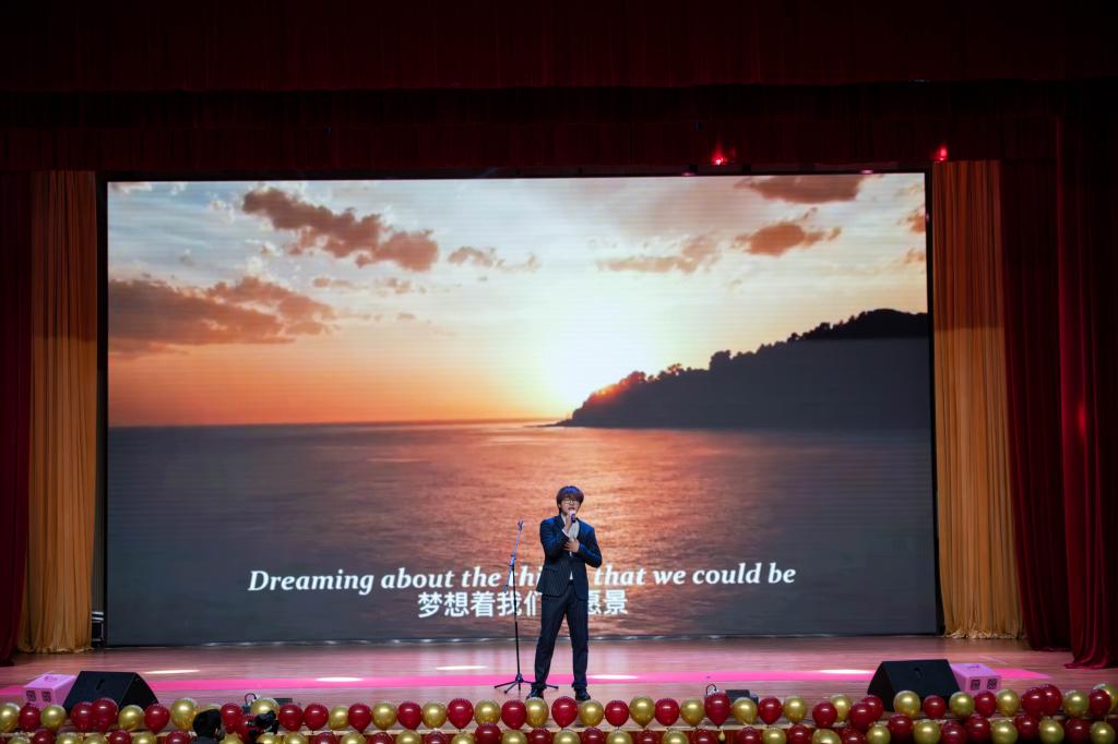 經過初賽、復賽階段的激烈角逐,十組選手脫穎而出晉級決賽。決賽采用中英文雙語競唱模式,設置中文歌曲演繹與英文經典傳唱兩大環(huán)節(jié),充分展現(xiàn)濟南校區(qū)中外合作辦學的國際化特色,為觀眾呈現(xiàn)了一場中西合璧的音樂盛宴。特別設置的往屆獲獎選手與藝術團聯(lián)袂表演環(huán)節(jié),將現(xiàn)場氣氛推向高潮,生動詮釋了中外文化交融的獨特魅力。