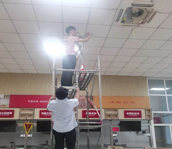 做好食品安全衛(wèi)生保障工作。開展食堂衛(wèi)生環(huán)境大掃除,對加工場所、設(shè)備設(shè)施、餐廚工具等進行清潔和消毒,檢修、維修設(shè)施設(shè)備。全面檢查原材料進貨查驗,落實索證索票及外觀查驗,做到來源可追溯。落實食品從業(yè)人員管理制度,確保從業(yè)人員規(guī)范上崗。做好校園環(huán)境衛(wèi)生和公共場所的通風(fēng)換氣,及時清運垃圾,全面清除衛(wèi)生死角,創(chuàng)建文明整潔的校園環(huán)境。