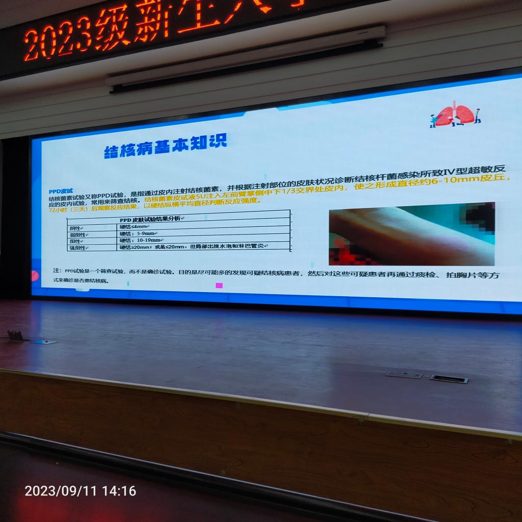 劉倩醫(yī)師為同學(xué)們講解了肺結(jié)核的防治知識(shí)。劉倩醫(yī)師就結(jié)核病的發(fā)展史、結(jié)核菌傳染途徑、預(yù)防措施、典型癥狀、易發(fā)人群、治療原則、預(yù)防措施等方面進(jìn)行了詳細(xì)的講解,讓同學(xué)們對(duì)結(jié)核病的防控有了全面的了解。