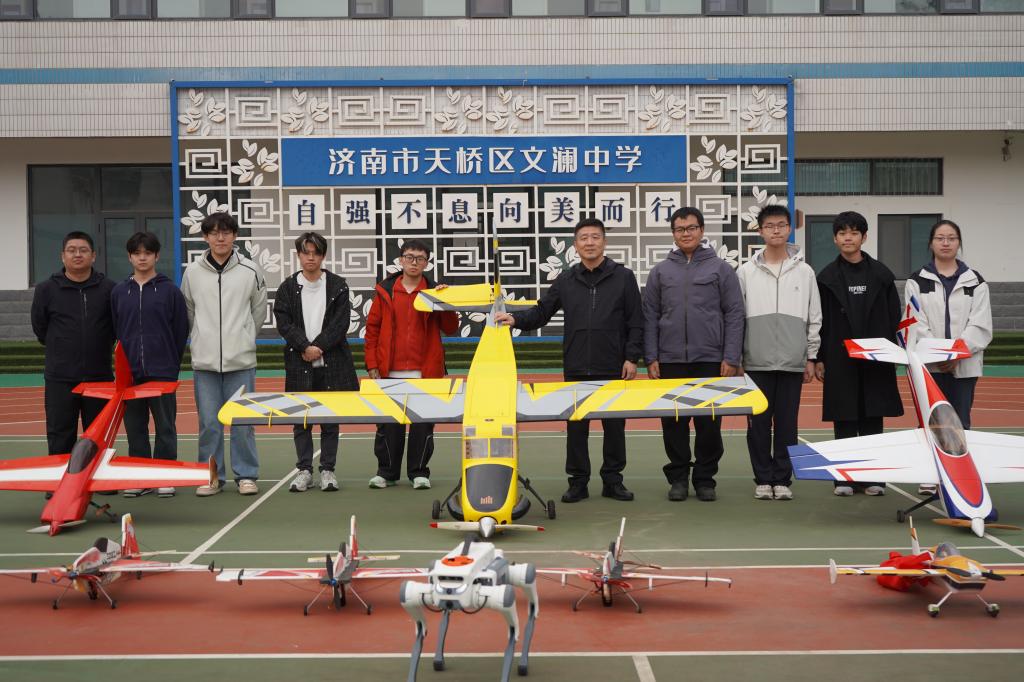 活動現(xiàn)場,來自濟(jì)南校區(qū)的無人機(jī)在文瀾中學(xué)操場上空劃出優(yōu)美軌跡,進(jìn)行了編隊飛行、精準(zhǔn)懸停、穿越障礙等一系列高難度演示,四足機(jī)器人展示了穩(wěn)健行走、上下樓梯、連續(xù)跳躍等能力,引來在場師生的陣陣掌聲。社團(tuán)成員們用通俗易懂的語言,為中學(xué)生們講解了無人機(jī)的基本原理、應(yīng)用領(lǐng)域與未來發(fā)展趨勢以及機(jī)器人技術(shù)背后的傳感、決策與控制原理。